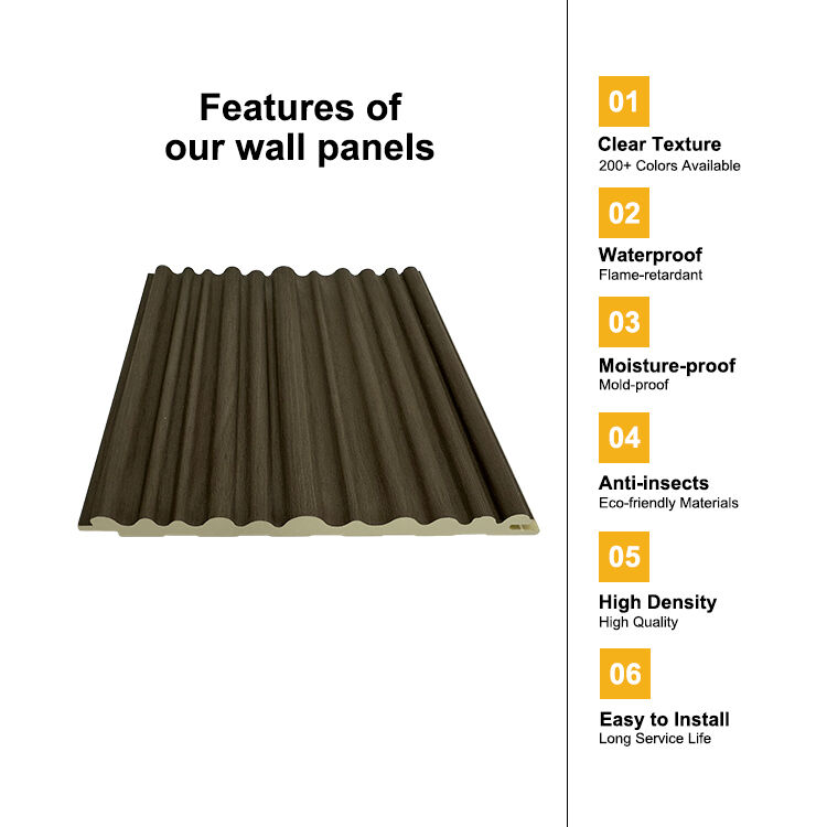 WPC(Wood-Plastic Composite) wall panels offer durable, low-maintenance interior cladding. Features include waterproof, moisture-proof design, and flame-retardant properties. Available in wood-grain textures and multiple colors (marble, fabric, metal, solid colors etc.). Easy glue and clip-lock installation saves 50% labor time. Ideal for homes, offices, and commercial spaces. Maintenance-free---no painting or sealing required. Passes CE/ISO certifications. Sustainable alternative to traditional wood/stone.