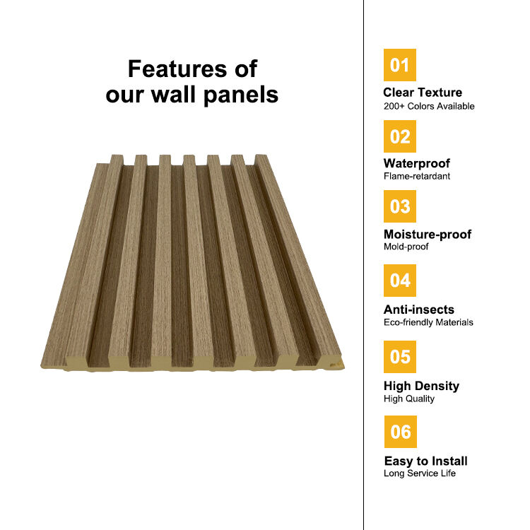 WPC(Wood-Plastic Composite) wall panels offer durable, low-maintenance interior cladding. Features include waterproof, moisture-proof design, and flame-retardant properties. Available in wood-grain textures and multiple colors (marble, fabric, metal, solid colors etc.). Easy glue and clip-lock installation saves 50% labor time. Ideal for homes, offices, and commercial spaces. Maintenance-free---no painting or sealing required. Passes CE/ISO certifications. Sustainable alternative to traditional wood/stone.
