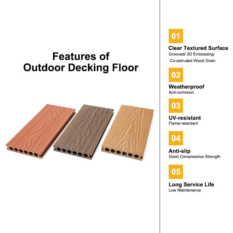 WPC Decking is ideal for outdoor decks, patios, pool surrounds, and boardwalks due to moisture/rot resistance. Combines wood aesthetics with plastic's durability for low-maintenance, long-lasting solutions in residential and public projects.