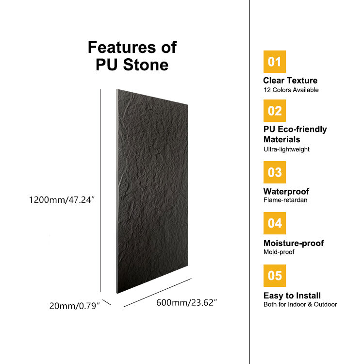 Design Durável e Versátil: Nosso Painel de Parede Artificial em Pedra PU para Interiores, vendido no atacado, foi projetado para atender a diversas necessidades, sendo adequado para uso em ambientes de entretenimento, comércio, residenciais e administrativos, permitindo que usuários como "você" escolham a opção perfeita para seu espaço.