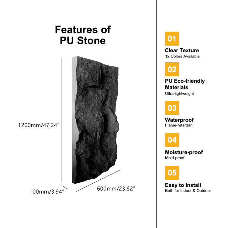 PU Cultural Stone is a high-quality polyurethane decorative panel that replicates the natural texture of stone with ultra-lightweight properties. This innovative wall cladding solution weighs 70% less than real stone while maintaining exceptional durability and weather resistance. The panels feature realistic 3D textures, varied color options, and easy installation with glue and air nailer.