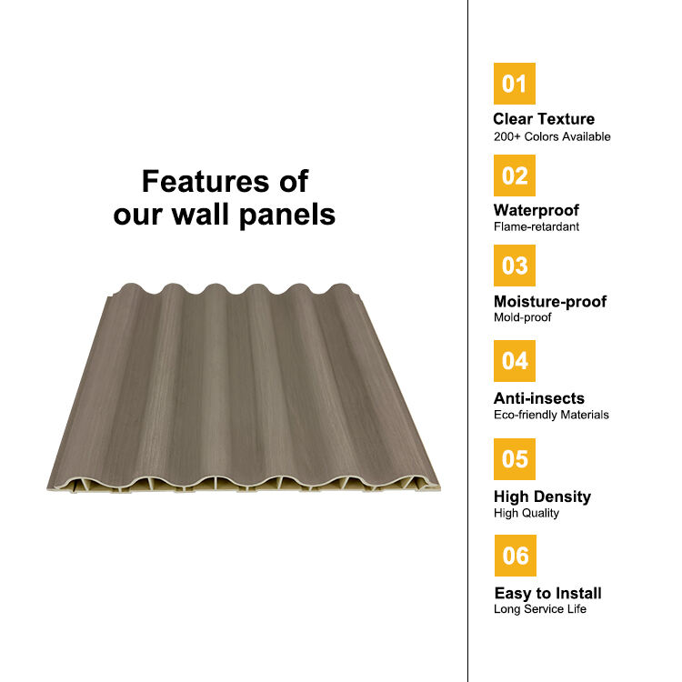 WPC (träplastkomposit) ) vägg paneler erbjuder hållbar , inredningsbeklädnad med låg underhållsbehov. Funktioner inkluderar vattentät, fuktsäker design och brandhämmande egenskaper. Finns i trästrukturer och flera färger (marmor, tyg, metall, solida färger etc.). Enkel lim- och klicklåsinstallation sparar 50 % av arbetsinsatsen. Idealisk för hem, kontor och kommersiella lokaler. Underhållsfri ---målning eller tätning krävs inte. Uppfyller CE/ISO-certifiering. Hållbar lösning jämfört med traditionellt trä/sten.