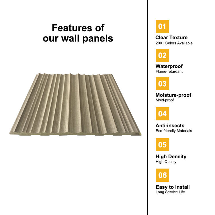 WPC(Wood-Plastic Composite) wall panels offer durable, low-maintenance interior cladding. Features include waterproof, moisture-proof design, and flame-retardant properties. Available in wood-grain textures and multiple colors (marble, fabric, metal, solid colors etc.). Easy glue and clip-lock installation saves 50% labor time. Ideal for homes, offices, and commercial spaces. Maintenance-free---no painting or sealing required. Passes CE/ISO certifications. Sustainable alternative to traditional wood/stone.