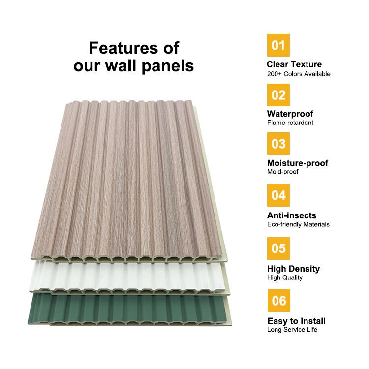 WPC(Wood-Plastic Composite) wall panels offer durable, low-maintenance interior cladding. Features include waterproof, moisture-proof design, and flame-retardant properties. Available in wood-grain textures and multiple colors (marble, fabric, metal, solid colors etc.). Easy glue and clip-lock installation saves 50% labor time. Ideal for homes, offices, and commercial spaces. Maintenance-free---no painting or sealing required. Passes CE/ISO certifications. Sustainable alternative to traditional wood/stone.