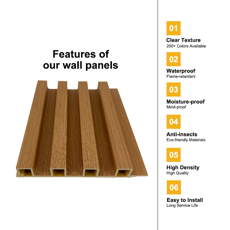 WPC(Wood-Plastic Composite) wall panels offer durable, low-maintenance interior cladding. Features include waterproof, moisture-proof design, and flame-retardant properties. Available in wood-grain textures and multiple colors (marble, fabric, metal, solid colors etc.). Easy glue and clip-lock installation saves 50% labor time. Ideal for homes, offices, and commercial spaces. Maintenance-free---no painting or sealing required. Passes CE/ISO certifications. Sustainable alternative to traditional wood/stone.