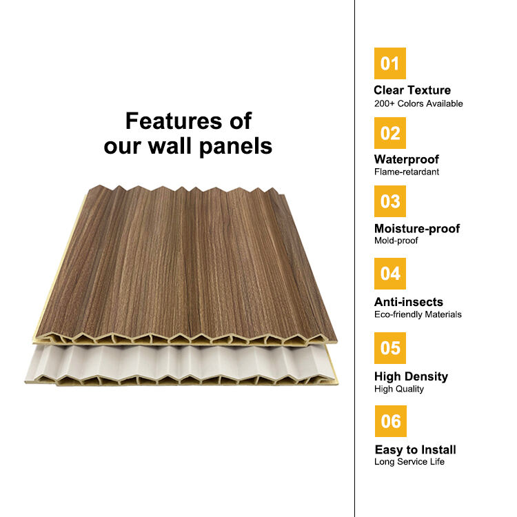 WPC(Wood-Plastic Composite) wall panels offer durable, low-maintenance interior cladding. Features include waterproof, moisture-proof design, and flame-retardant properties. Available in wood-grain textures and multiple colors (marble, fabric, metal, solid colors etc.). Easy glue and clip-lock installation saves 50% labor time. Ideal for homes, offices, and commercial spaces. Maintenance-free---no painting or sealing required. Passes CE/ISO certifications. Sustainable alternative to traditional wood/stone.